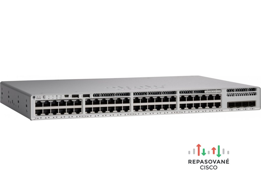 Cisco Catalyst 9200L. Typ přepínače: Řízený, Přepínač vrstev: L3. Typy přepínaných ethernetových portů RJ-45: Gigabit Ethernet (10/100/1000), Počet přepínaných ethernetových portů RJ-45: 48, Počet portů USB 2.0: 3. Tabulka MAC adres: 16000 pol., Kapacita přepínání: 176 Gbit/s. Síťové standardy: IEEE 802.1D, IEEE 802.1Q, IEEE 802.1p, IEEE 802.1s, IEEE 802.1w, IEEE 802.1x, IEEE 802.3, IEEE.... Podpora napájení po Ethernetu (PoE)